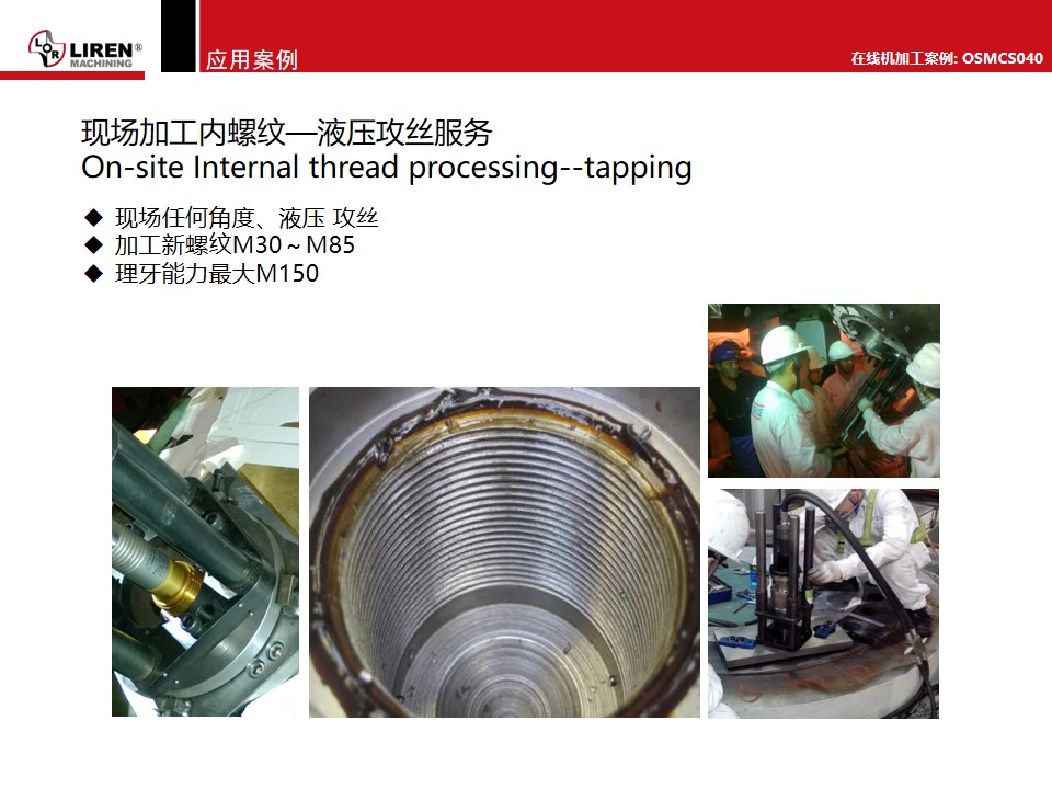 通過(guò)十年多的探索和積累,上海利刃已具備了相當(dāng)?shù)难b備規(guī)模和加工能力,積累了許多經(jīng)驗(yàn)技術(shù),成功地向客戶提供了兩千余次、多種類型的現(xiàn)場(chǎng)機(jī)械加工服務(wù),在火電、核電、石油、化工、天然氣、冶金、造船、設(shè)備制造等領(lǐng)域里,取得了日益廣泛的應(yīng)用。