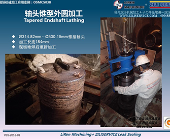 2008年,上海利刃工程技術(shù)服務(wù)有限公司開(kāi)拓性地開(kāi)始了“現(xiàn)場(chǎng)機(jī)械加工服務(wù)”。現(xiàn)場(chǎng)機(jī)械加工,即把專用便攜式機(jī)床安裝在需要加工的現(xiàn)場(chǎng)設(shè)備上,以實(shí)現(xiàn)現(xiàn)場(chǎng)對(duì)平面、孔、軸等所需要的車、銑、鉆、鏜、攻絲等各類機(jī)械加工。